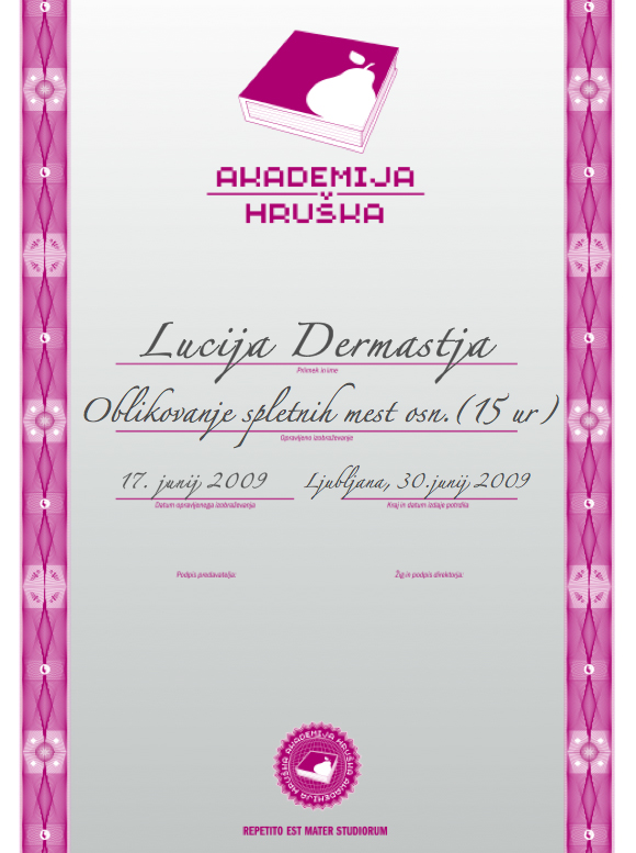 Po zaključku izobraževanja udeleženci pridobijo diplomo, s katero potrdimo visok nivo znanja, ki ga predavatelj prenesel na udeleženca.